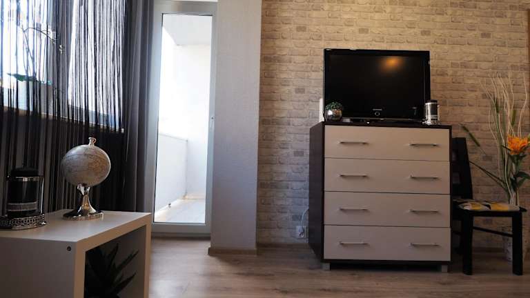 Die Ferienwohnung verfügt über ein Schlafzimmer, ein Wohnzimmer mit einem Flachbild-TV, eine gut ausgestattete Küche mit Kühlschrank und Geschirrspüler sowie ein Badezimmer mit Dusche. Zudem werden Handtücher und Bettwäsche bereitgestellt.