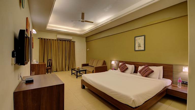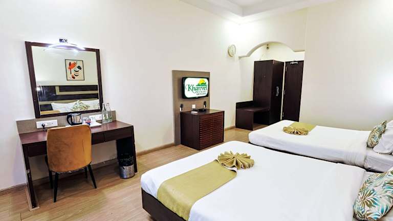 Die klimatisierten Zimmer im Khanvel Resort sind modern eingerichtet und verfügen über einen gemütlichen Balkon mit Blick auf den Pool. Jedes Zimmer ist mit einem Sofa und einem Fernseher ausgestattet. Die eigenen Badezimmer bieten eine Dusche und ein WC. Das Resort bietet auch ein Babybecken und einen Whirlpool für zusätzlichen Komfort und Entspannung.