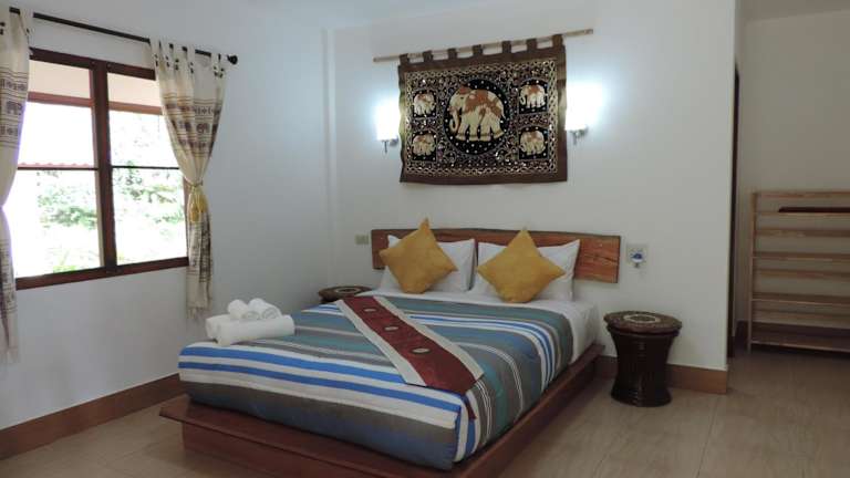 Die Zimmer im Khao Sok Holiday Resort sind gemütlich eingerichtet und bieten einen Ventilator für eine angenehme Temperatur. Jedes Zimmer verfügt über einen Sitzbereich und ein eigenes Badezimmer. Von den Zimmern aus haben Sie einen herrlichen Blick auf die umliegenden Berge, was zu einer entspannten Atmosphäre beiträgt.