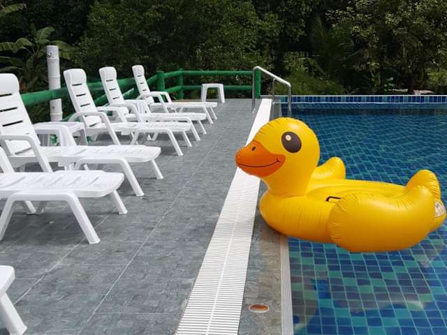 Khao Sok Royal Bamboo Hostel ist eine Unterkunft, die Übernachtungsmöglichkeiten in Form von Mehrbettzimmern bietet. Sie verfügt über einen Außenpool, ein Restaurant, einen Garten und eine Terrasse. Zudem stehen ein kostenloser Privatparkplatz und ein Tourenschalter zur Verfügung. Die Unterkunft bietet außerdem kostenloses WLAN und einen kostenpflichtigen Flughafentransfer. Die Unterkunft ist nicht für Haustiere zugelassen und spricht Englisch.