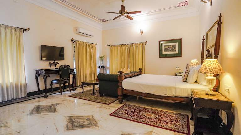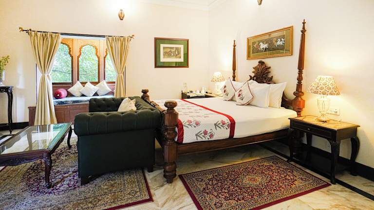 Entdecken Sie das Khas Bagh in Jaipur, Rajasthan, und erleben Sie einen unvergesslichen Aufenthalt inmitten der atemberaubenden Landschaft. Entspannen Sie am Außenpool, genießen Sie den Blick auf die Berge und lassen Sie sich im Restaurant kulinarisch verwöhnen. Die komfortablen Zimmer bieten Ihnen allen nötigen Komfort und einen herrlichen Ausblick auf die Berge oder den Garten. Profitieren Sie von den kostenlosen Leihfahrrädern und erkunden Sie die Umgebung. Das freundliche Personal steht Ihnen rund um die Uhr zur Verfügung. Besuchen Sie das Fort Amber und das Fort Jaigarh, die nur wenige Kilometer entfernt sind. Der internationale Flughafen Jaipur ist ebenfalls leicht zu erreichen.