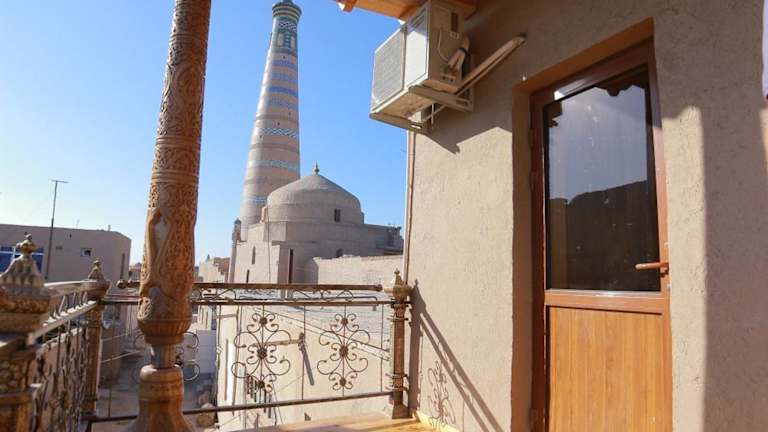 Das Khiva Siyovush Hotel befindet sich in Chiwa und bietet eine gute Ausgangslage, um die historische Stadt zu erkunden. In der Umgebung finden Sie zahlreiche Sehenswürdigkeiten, darunter beeindruckende Gebäude und historische Stätten. Die Lage des Hotels ermöglicht es Ihnen, die Stadt bequem zu Fuß zu erkunden und die einzigartige Atmosphäre von Chiwa zu erleben. Der internationale Flughafen Urgench ist ebenfalls leicht zu erreichen und bietet eine gute Anbindung an andere Städte und Regionen.