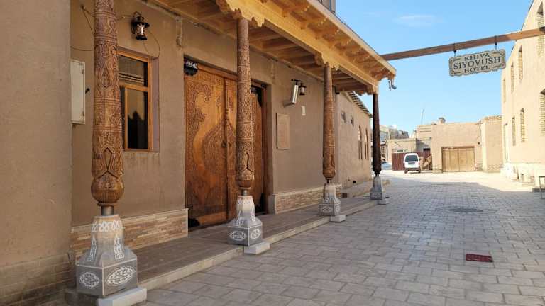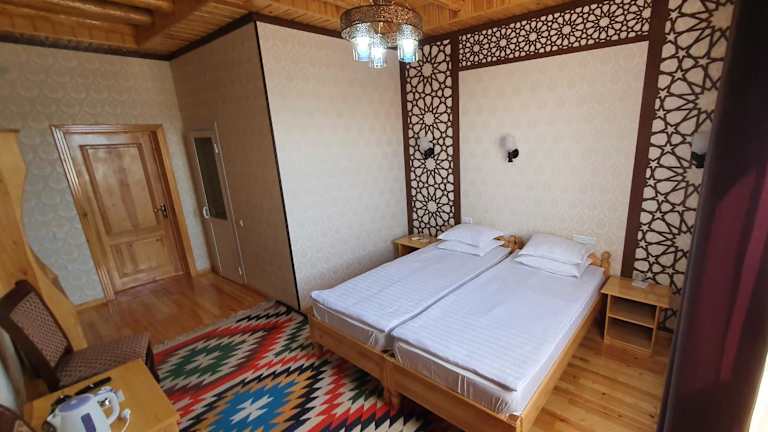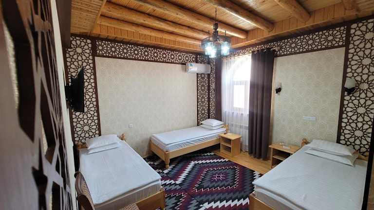 Das Khiva Siyovush Hotel bietet eine 24-Stunden-Rezeption und verschiedene Annehmlichkeiten für einen angenehmen Aufenthalt. Sie können in der Gemeinschaftslounge entspannen und kostenfreies WLAN nutzen, um in Verbindung zu bleiben. Das freundliche Personal steht Ihnen jederzeit zur Verfügung und bietet Ihnen gerne Flughafentransfers oder andere Dienstleistungen an. Entdecken Sie die faszinierende Stadt Chiwa und kehren Sie dann in das Khiva Siyovush Hotel zurück, um sich in Ihrem komfortablen Zimmer auszuruhen.