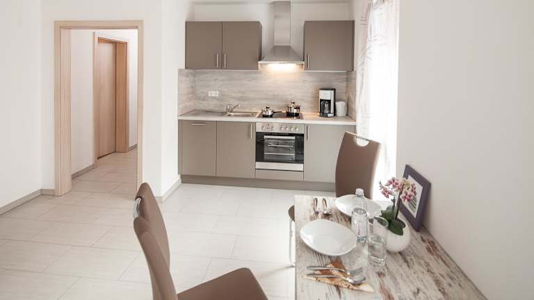 In den Kiefer-Apartments haben die Gäste die Möglichkeit, ihre eigenen Mahlzeiten zuzubereiten, da jede Wohnung über eine voll ausgestattete Küche verfügt. Dies bietet Flexibilität und Unabhängigkeit während des Aufenthalts. Alternativ gibt es in der Umgebung verschiedene Restaurants und Cafés, in denen Sie lokale und internationale Küche genießen können.