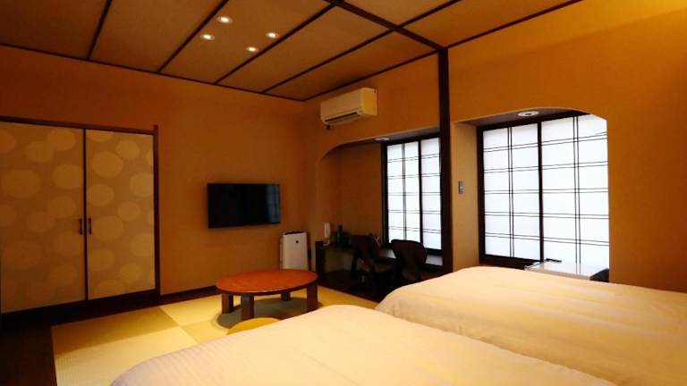 Die Zimmer im Hotel Kii no Matsushima sind im traditionellen Stil eingerichtet und verfügen über Tatamimatten und einen Flachbild-TV. Jedes Zimmer bietet ein gemütliches und komfortables Ambiente, in dem sich die Gäste entspannen können. Die gemeinschaftlichen Badezimmer sind mit Handtüchern und Bettwäsche ausgestattet. Kostenloses WLAN ist im gesamten Hotel verfügbar.