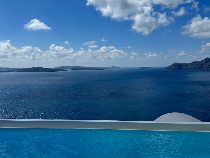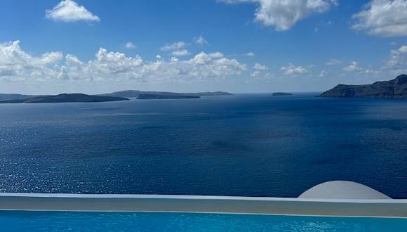 Santorinitraum durch perfekte Aussicht und schönem Zimmer
