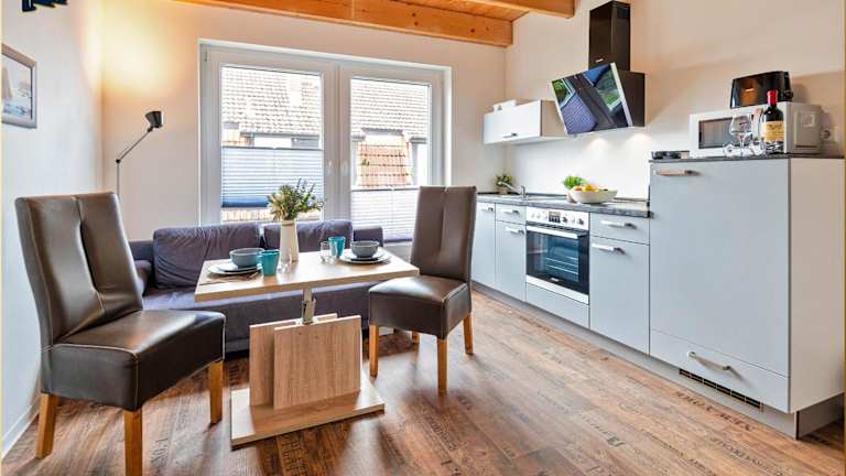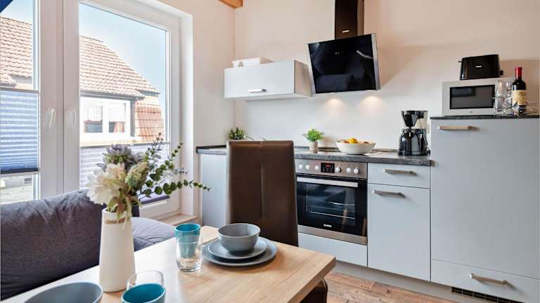 Die Ferienwohnung verfügt über ein Schlafzimmer und bietet eine Küche mit Kühlschrank und Ofen. Zu den weiteren Annehmlichkeiten zählen ein TV sowie Heizung und WLAN in allen Bereichen. Es stehen Gartenmöbel zur Verfügung.