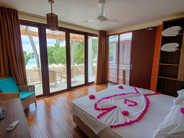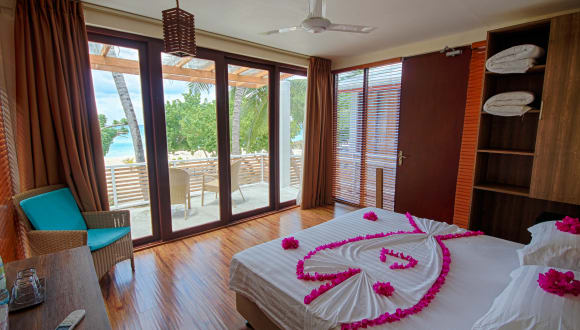 Das Kinan Retreat auf Fulidhoo bietet seinen Gästen einen entspannten und erholsamen Aufenthalt in einer atemberaubenden Umgebung. Mit einem eigenen Strandbereich und Grillmöglichkeiten können Sie die Schönheit der Insel in vollen Zügen genießen. Die Zimmer sind komfortabel eingerichtet und einige verfügen über eine Terrasse oder einen Balkon. WLAN steht Ihnen in der gesamten Unterkunft kostenfrei zur Verfügung. Das freundliche Personal an der 24-Stunden-Rezeption steht Ihnen jederzeit zur Verfügung und ein Geschenkeladen bietet Souvenirs und kleine Aufmerksamkeiten. In der Umgebung können Sie verschiedene Aktivitäten wie Schnorcheln und Angeln unternehmen. Der internationale Flughafen Malé ist etwa 58 km entfernt.
