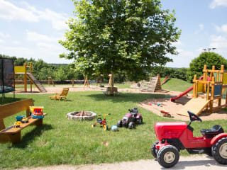 Glückliche Kinder Unser Kinder-Ferienhof beeindruckt Sie durch seinen riesengroßen Spielplatz. Auf 22.000 qm können Ihre Kinder jeden Tag neue Abenteuer erleben. Egal ob im Baumhaus, im Klettergarten oder beim Bobby-Carrennen auf unserer hofeigenen Spielstrasse, Ihre Kinder werden jede Menge Spaß haben und schnell neue Freunde finden. Und falls das Wetter mal nicht mitspielt, steht Ihnen unsere Indoor-Familienerlebniswelt auf über 140 qm zur Verfügung. Mit einem riesigen Bällebad für die Kleinsten, einem Spielhaus für spannende Abenteuer, einer Boulderwand, einer quietschgelben Röhrenrutsche u.v.m. bieten wir Spielspass von 0-99 Jahren. Lassen Sie sich auch faszinieren von unserer „Erlebniswelt Bauernhof“. Freuen Sie sich auf den Kontakt mit unseren Ponys Princess und Benni, den Alpakas Rosi und Emil und den Meerschweinchen. Unsere Hühner liefern Ihnen täglich die frischen Frühstückseier. Unser Kater Burli ist der „Chef“ im Stall und lässt sich gerne von Ihren Kindern streicheln. Wir bieten zum Beispiel zweimal pro Woche geführtes Ponyreiten, so wie gemeinsames Füttern unserer Tiere an. Der Altmühlsee ist nur 4,5 km und der Brombachsee ist 11 km von uns entfernt. Unser Tipp: Unternehmen Sie einen Ausflug in den Playmobil-Funpark in Zirndorf (lediglich 40 Minuten Fahrzeit). Wir bieten Ihnen je nach Saison vergünstigte Eintrittskarten.