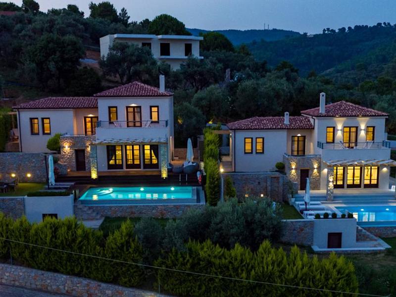 Die King Size Villas befinden sich weniger als 600 m vom Strand Kolios und 1 km vom Strand Agia Paraskevi entfernt. Die Villa ist 1,7 km vom Strand Vromolimnos und etwa 6,7 km vom Hafen Skiathos entfernt. Der nächstgelegene Flughafen, der Flughafen Skiathos, liegt in einer Entfernung von 9 km.