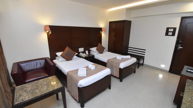 Die Zimmer im Kings International sind modern gestaltet und verfügen über neutrale Wandfarben. Jedes Zimmer ist mit einer Minibar und einem eigenen Badezimmer mit Badewanne ausgestattet. Zur weiteren Ausstattung gehören ein TV mit Kabelkanälen und kostenfreies WLAN. Das Hotel bietet auch eine 24-Stunden-Rezeption, einen Geldwechsel und eine Autovermietung. Auf Anfrage steht Ihnen ein Wäscheservice zur Verfügung.