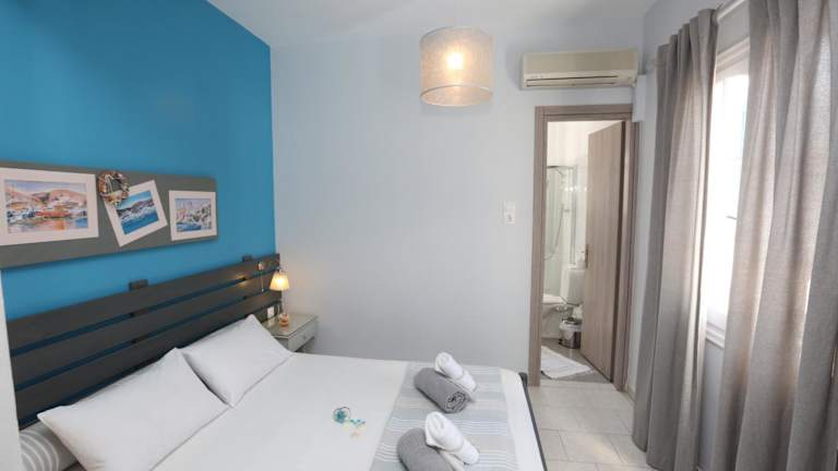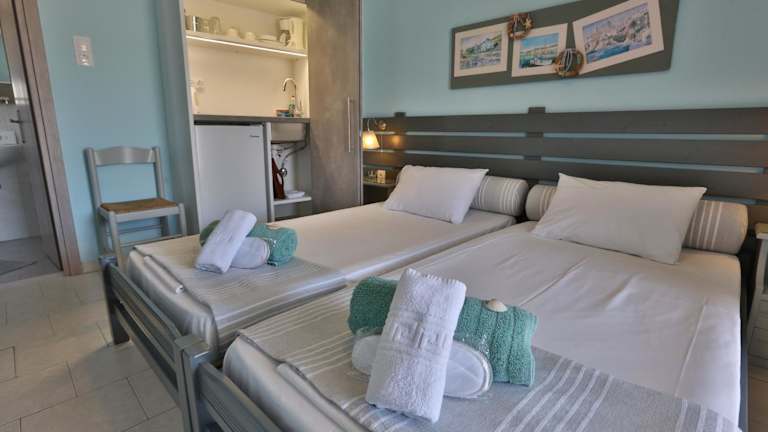 Das Kini Bay bietet eine Auswahl an gemütlichen Unterkünften, die im traditionellen kykladischen Stil gestaltet sind. Einige der Zimmer verfügen über eine Terrasse oder einen Balkon, von denen aus Sie einen herrlichen Blick auf das Meer oder die Berge haben. Die Zimmer sind gut ausgestattet und verfügen über Annehmlichkeiten wie Kühlschrank und Wasserkocher. Einige Unterkünfte bieten sogar eine voll ausgestattete Küche mit Backofen, so dass Sie Ihre eigenen Mahlzeiten zubereiten können. Jedes Zimmer verfügt über ein eigenes Badezimmer mit Badewanne oder Dusche. Bettwäsche wird gestellt und eine Klimaanlage ist Standard, um Ihren Aufenthalt angenehm und komfortabel zu gestalten.