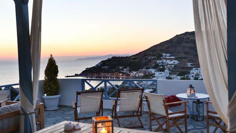 Das Kini Bay liegt im idyllischen Dorf Kini, das etwa 8 km von der Stadt Ermoupoli entfernt ist. Das Dorf bietet eine ruhige und entspannte Atmosphäre und ist der perfekte Ort, um die Schönheit der Kykladen zu erleben. Von den Veranden der Unterkunft aus haben Sie einen herrlichen Blick auf die Ägäis und können den atemberaubenden Sonnenuntergang genießen. Die Lage des Kini Bay bietet auch eine gute Anbindung an den Haupthafen der Insel, der nur 8 km entfernt liegt und Ihnen die Möglichkeit bietet, die Insel und ihre Sehenswürdigkeiten leicht zu erkunden.