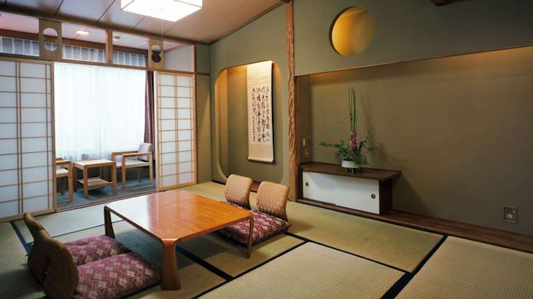 Das Kinparo bietet traditionelle japanische Unterkünfte im Stil mit Tatami-Matten und Futon-Betten. Die Unterkunft hebt sich durch öffentliche Bäder hervor, die natürliche Grünteeblätter verwenden.