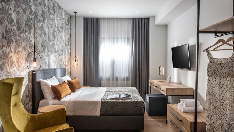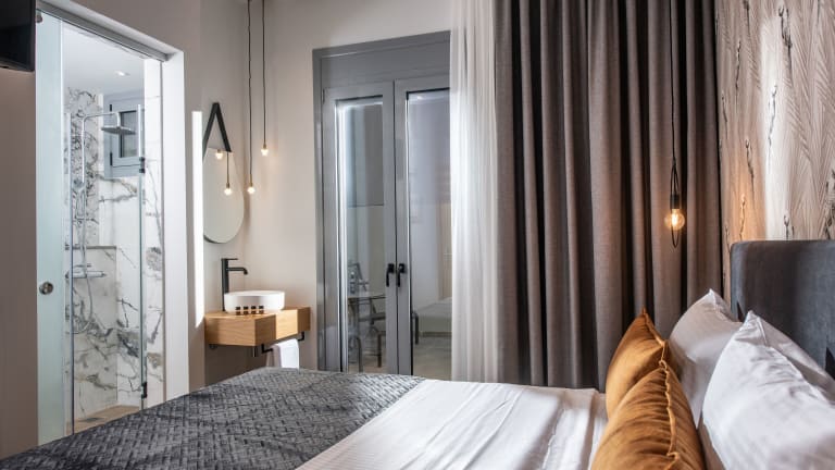 Die Zimmer in der Unterkunft Kipos Boutique Suites sind mit einem Schreibtisch, einem Flachbild-TV, einem eigenen Badezimmer, Bettwäsche und Handtüchern ausgestattet. Jedes Zimmer verfügt über Klimaanlage und einen Safe.
