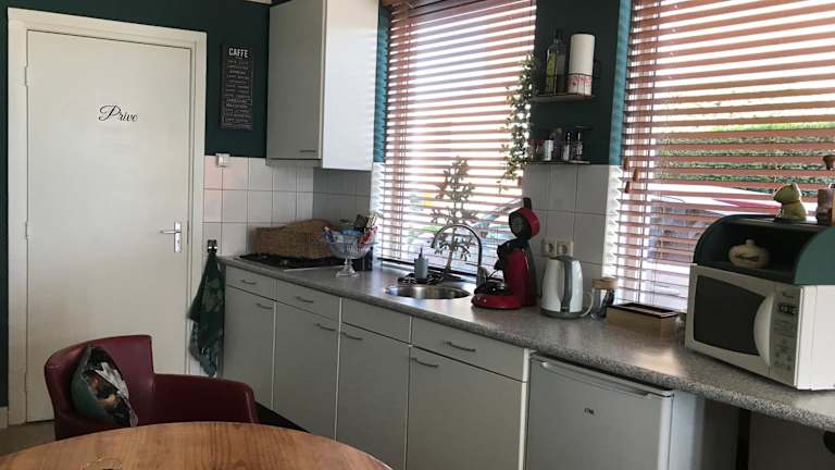 Die Wohneinheiten sind mit einer voll ausgestatteten Küche ausgestattet, die einen Esstisch beinhaltet. Zur Ausstattung gehören sowohl Kühlschrank, Ofen als auch Mikrowelle, Kaffeemaschine und Wasserkocher.
