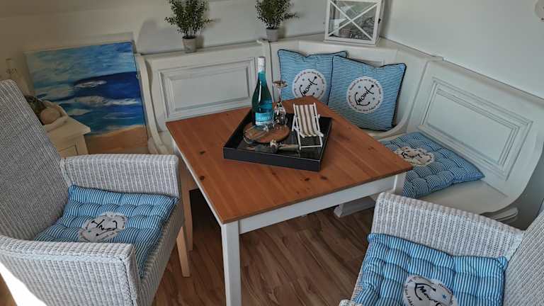 KleinAberFein an der Nordseeküste ist eine Ferienwohnung, die eine Terrasse mit Gartenblick bietet. Die Unterkunft verfügt über ein Schlafzimmer sowie ein Wohnzimmer.