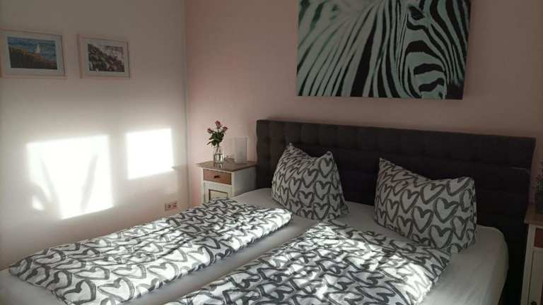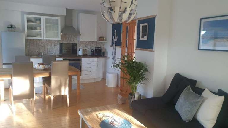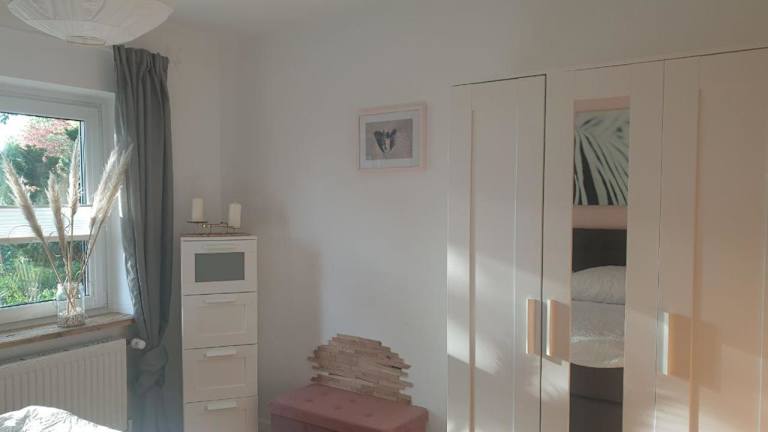Die Ferienwohnung verfügt über ein Schlafzimmer, ein Wohnzimmer und ein Badezimmer mit Dusche. Zur Ausstattung gehören ein Flachbild-TV und eine gut eingerichtete Küchenzeile mit Kühlschrank und Ofen. Handtücher und Bettwäsche werden bereitgestellt.