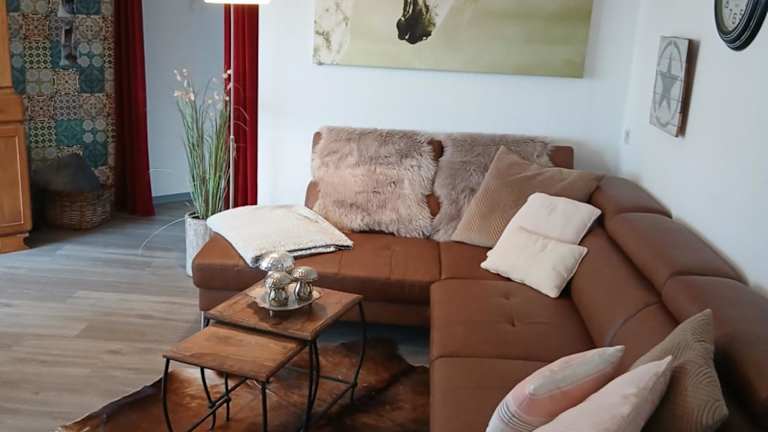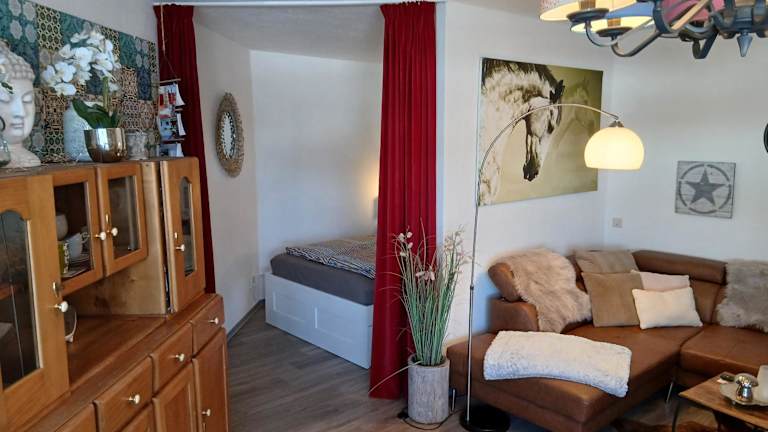 Das Apartment in der Kleinen Auszeit verfügt über einen Balkon, von dem aus Sie die schöne Umgebung genießen können. Die Küche ist mit einem Kühlschrank, einem Backofen und einem Kochfeld ausgestattet, so dass Sie Ihre eigenen Mahlzeiten zubereiten können. Das Wohnzimmer bietet einen gemütlichen Sitzbereich und einen Essbereich. Das Schlafzimmer ist komfortabel und das Badezimmer verfügt über eine Dusche und eine Badewanne. Zur Unterhaltung stehen ein Flachbild-Sat-TV, ein DVD-Player und ein CD-Player zur Verfügung.