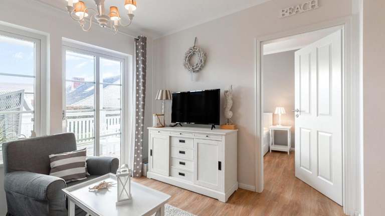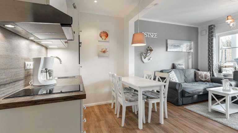 Die Ferienwohnung verfügt über zwei Schlafzimmer und ist ausgestattet mit einem Flachbild-TV mit Satellitenprogrammen. Die Küchenzeile ist gut ausgestattet und bietet unter anderem einen Kühlschrank und einen Geschirrspüler. Zudem gibt es ein Badezimmer mit Dusche.