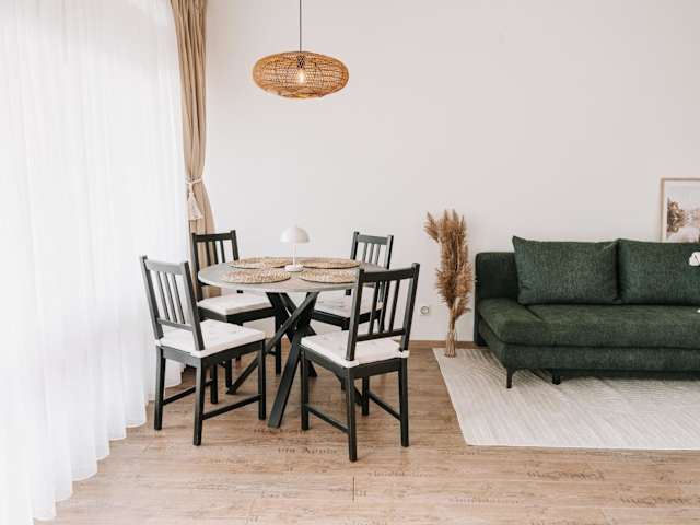 Die Ferienwohnung verfügt über 2 Schlafzimmer, ein Badezimmer, sowie über Bettwäsche und Handtücher. Des Weiteren sind ein Flachbild-TV mit Satellitenkanälen, ein Essbereich, eine voll ausgestattete Küche und ein Balkon mit Seeblick vorhanden.
