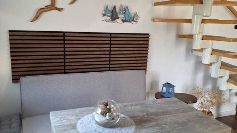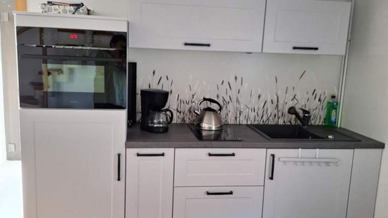 Das Ferienhäuschen umfasst ein Schlafzimmer, ein Wohnzimmer und eine voll ausgestattete Küche, die mit einem Kühlschrank und einer Kaffeemaschine ausgestattet ist. Des Weiteren beinhaltet die Unterkunft ein Badezimmer mit Dusche und Haartrockner. Handtücher und Bettwäsche sind nicht im Preis enthalten, können aber gegen Aufpreis bereitgestellt werden.