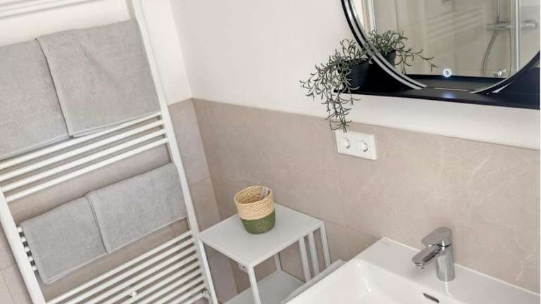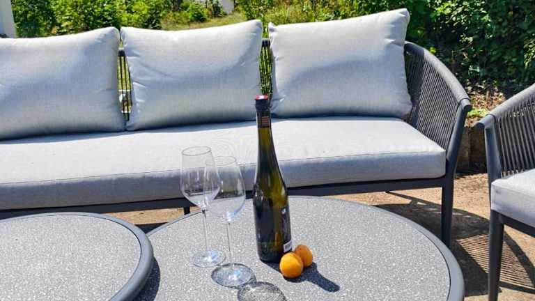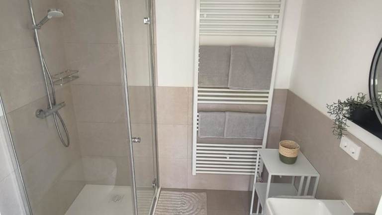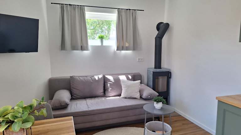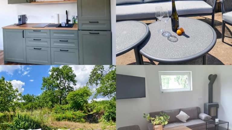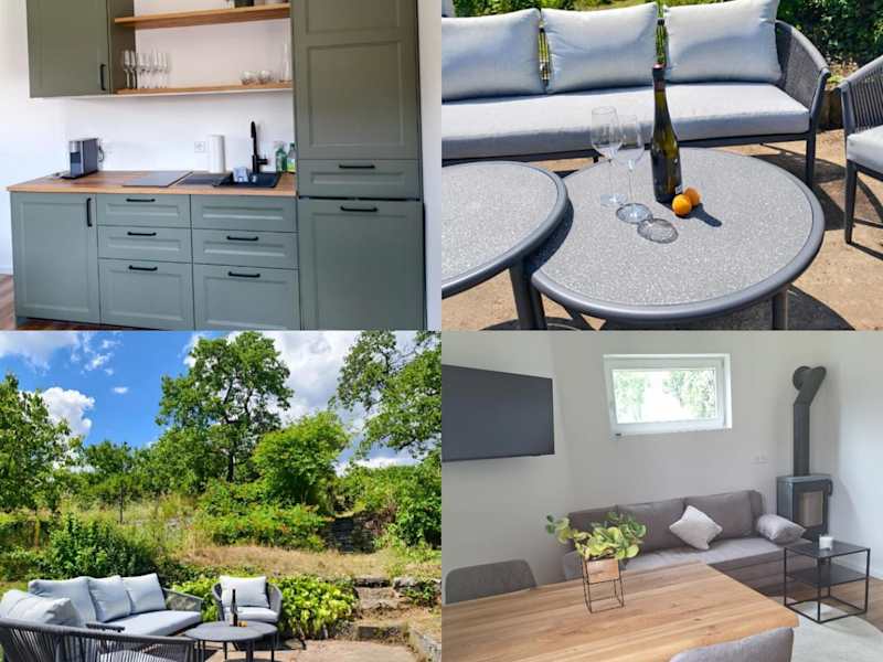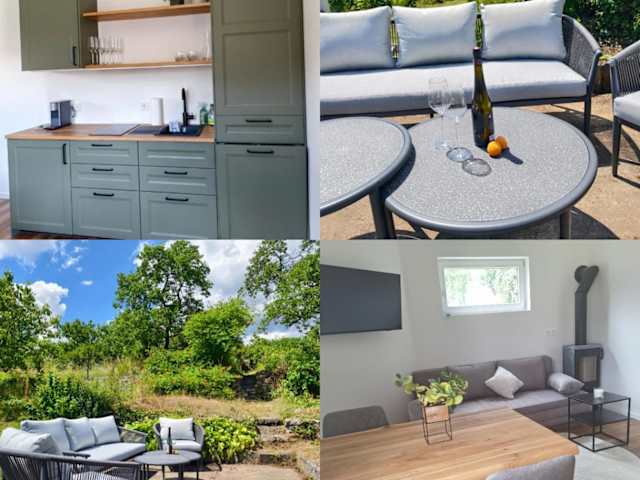 Die Ferienwohnung verfügt über ein Schlafzimmer, ein Wohnzimmer sowie eine voll ausgestattete Küche, die mit einem Kühlschrank und einer Kaffeemaschine eingerichtet ist. Ein Badezimmer mit Dusche und Haartrockner ist ebenfalls vorhanden. Handtücher und Bettwäsche werden bereitgestellt. Zudem ist die Unterkunft klimatisiert und bietet Gartenblick. Weitere Annehmlichkeiten umfassen eine Terrasse, Gartenmöbel sowie Grillmöglichkeiten.