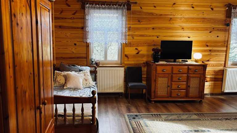 Das Klejniki - domek na kolonii liegt etwa 45 km von der Oper Podlasie und der Philharmonie entfernt. Die Umgebung bietet eine ruhige und natürliche Atmosphäre, ideal zum Entspannen und Erholen. Erkunden Sie die malerische Landschaft und nutzen Sie die kostenfreien Fahrräder, um die Gegend zu erkunden.
