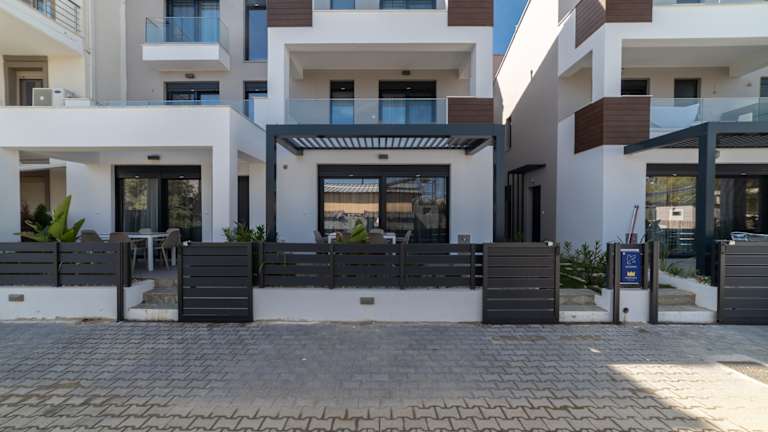 Wohnanlage Kleoniki Die Wohnanlage Kleoniki bietet das perfekte Umfeld für erholsame Stunden und unvergessliche Erlebnisse. Nur 80 Meter von der Strandpromenade Costa Ofrynio entfernt, können Sie den goldenen Sandstrand genießen, Rad fahren oder Ihre morgendliche Joggingrunde am Meer drehen. Parkplätze stehen Ihnen in der Wohnanlage Kleoniki zur Verfügung, damit Sie schnell parken und Ihren Traumurlaub beginnen können! Apartments mit einem oder zwei Schlafzimmern sowie Lofts mit zwei Schlafzimmern warten auf Sie – checken Sie ein! Wohnanlage Irida Die neue Wohnanlage Irida entsteht in einem ruhigen Wohngebiet, wo Kinder sicher in der Natur spielen können. Sie befindet sich direkt neben der Wohnanlage Kleoniki und nur wenige Schritte vom mit der Blauen Flagge ausgezeichneten Strand Costa Ofrynio entfernt. Die Apartments mit einem oder zwei Schlafzimmern sind komplett ausgestattet für einen langen und erholsamen Urlaub! Wählen Sie ein Apartment im Erdgeschoss mit Garten oder Ihr Loft auf gleicher Höhe, packen Sie Ihre Badesachen ein und checken Sie ein – für unvergessliche Momente!