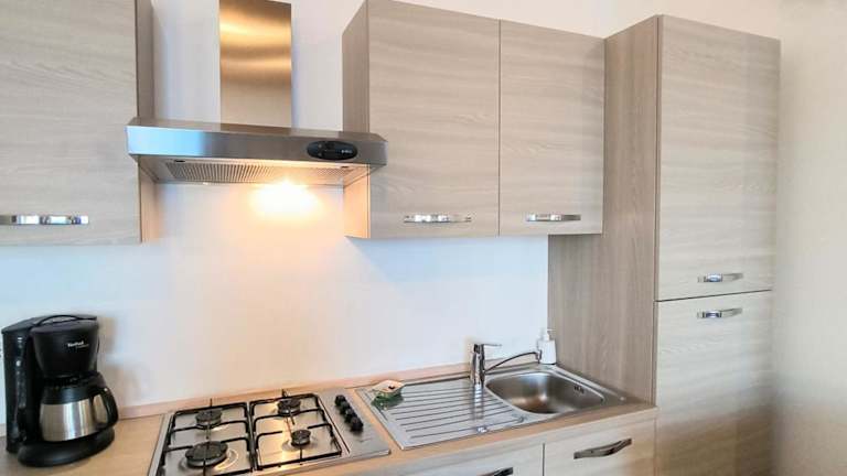 Das Ferienhaus bietet zwei Schlafzimmer sowie ein Wohnzimmer mit einem Satelliten Flachbild-TV. Die gut ausgestattete Küche ermöglicht eine eigenständige Zubereitung von Speisen. Das Badezimmer ist mit einem Bidet und einer Dusche ausgestattet. Handtücher und Bettwäsche werden bereitgestellt, um den Aufenthalt der Gäste angenehm zu gestalten.