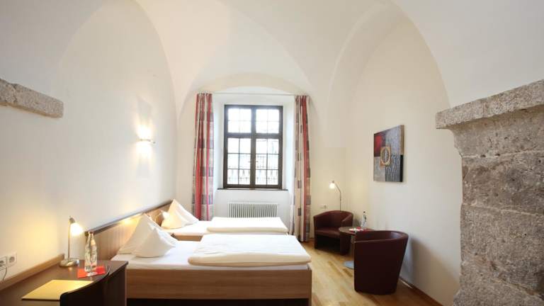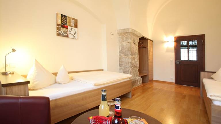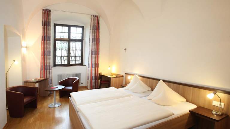 Die Zimmer im Kloster Obermarchtal sind komfortabel und gemütlich eingerichtet. Einige Zimmer verfügen über einen separaten Sitzbereich, der Ihnen zusätzlichen Komfort bietet.