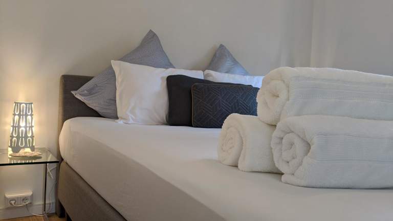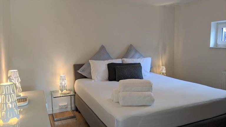 Die Ferienwohnung verfügt über ein Schlafzimmer, ein Badezimmer mit Dusche, ein Wohnzimmer und einen Essbereich. Die gut ausgestattete Küche bietet einen Kühlschrank, einen Geschirrspüler und einen Ofen. Allgemeine Annehmlichkeiten wie ein Blu-ray-Player sind vorhanden, ebenso wie Handtücher und Bettwäsche.