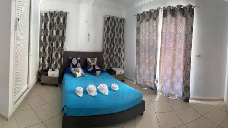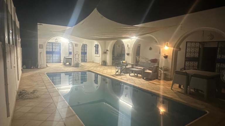 Das Kmi in Zarzis ist ein wunderbar gelegenes Ferienhaus, das Ihnen Ruhe und Erholung bietet. Mit einem eigenen Pool, einem Garten und Grillmöglichkeiten können Sie hier Ihren Urlaub in vollen Zügen genießen. Die Unterkunft verfügt über drei Schlafzimmer, eine voll ausgestattete Küche und drei Badezimmer. Der Außenpool und die Terrasse laden zum Entspannen ein und in der Umgebung gibt es viele Möglichkeiten zum Angeln.