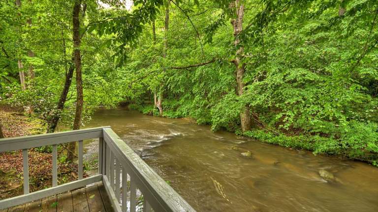 Knotty Creek Retreat - Creek Access, Outdoor Firepit + Hot Tub with Creek Views! bietet klimatisierte Übernachtungsmöglichkeiten in einem Ferienhaus mit einem Schlafzimmer. Die Unterkunft umfasst eine Terrasse, einen Balkon sowie eine rund um die Uhr besetzte Rezeption, die den Gästen Tipps gegeben kann.