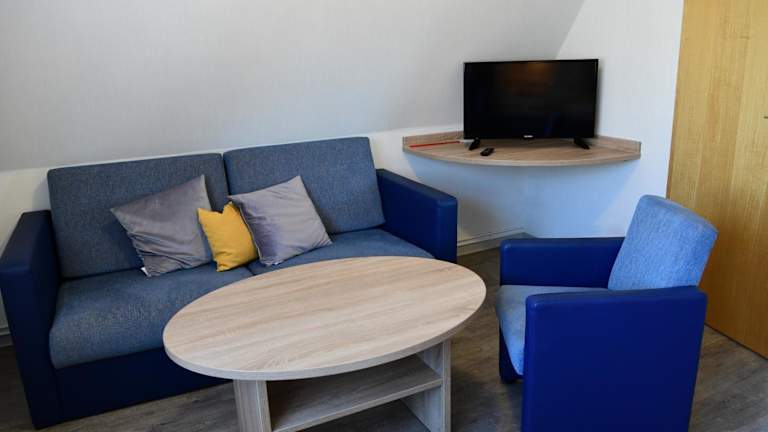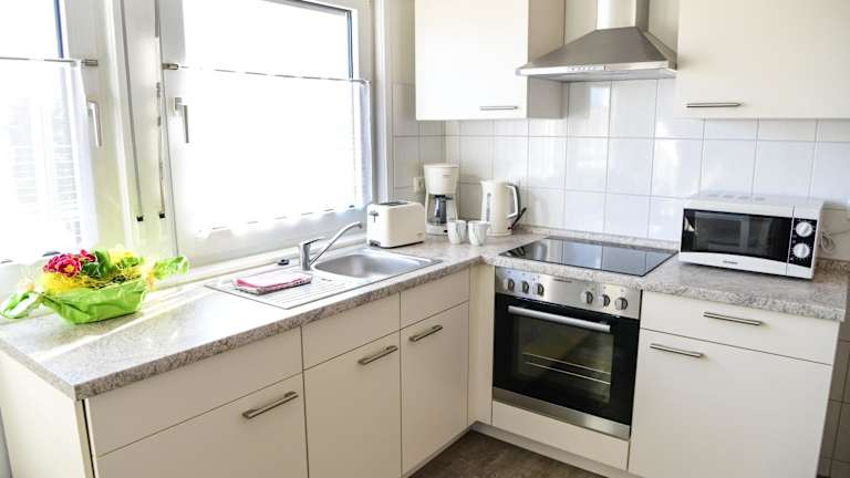 Die Ferienwohnung verfügt über ein Schlafzimmer, ein Wohnzimmer mit Flachbild-TV, eine gut ausgestattete Küche mit Kühlschrank und Ofen sowie ein Badezimmer mit Dusche. Handtücher und Bettwäsche werden zur Verfügung gestellt. Von der Terrasse aus haben die Gäste einen Blick auf den Garten.