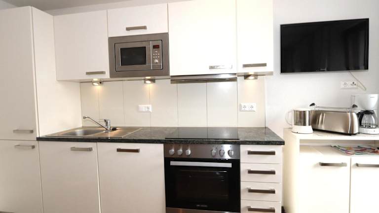Die Ferienwohnung verfügt über 1 Schlafzimmer, eine Küche mit Kühlschrank und Geschirrspüler, ein Wohnzimmer mit Flachbild-TV und Sitzbereich sowie 1 Badezimmer mit Dusche. Handtücher und Bettwäsche werden bereitgestellt.