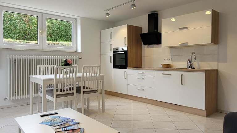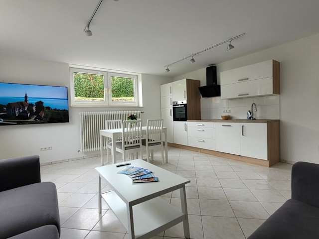 Die Ferienwohnung umfasst ein Schlafzimmer, ein Wohnzimmer und ein Badezimmer mit Dusche und Haartrockner. Eine voll ausgestattete Küche ist mit Kühlschrank und Kaffeemaschine ausgestattet. Handtücher und Bettwäsche werden bereitgestellt. Die Wohnung ist eine Nichtraucherunterkunft und geeignet für Familien. Es sind keine Haustiere erlaubt.