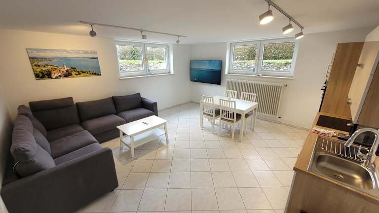 Die Ferienwohnung befindet sich in Markdorf, in der Nähe des Flughafens Friedrichshafen, der etwa 13 km entfernt ist. Die Umgebung bietet Möglichkeiten für Outdoor-Aktivitäten wie Wandern und Fahrradfahren. Zu den Sehenswürdigkeiten in der Nähe zählt die Messe Friedrichshafen, die 15 km entfernt ist, sowie das Casino Bregenz, das 50 km entfernt liegt.