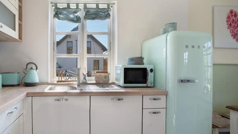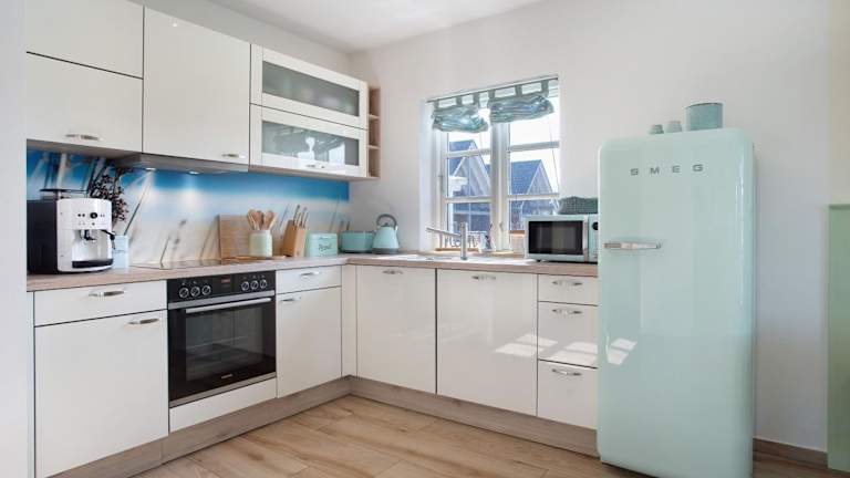 Die Unterkunft bietet eine komplett ausgestattete Küche mit einem Kühlschrank und einem Geschirrspüler, sodass die Selbstversorgung ermöglicht wird. Handtücher und Bettwäsche werden bereitgestellt.