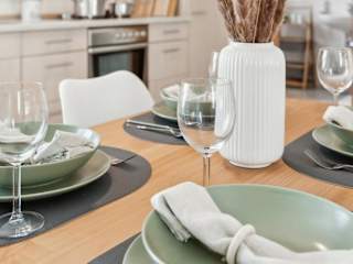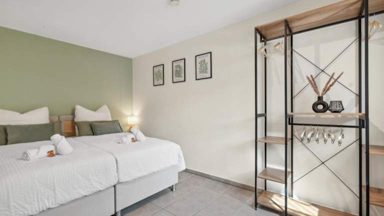 Die Ferienwohnung besteht aus einem Schlafzimmer, einem Wohnzimmer und einer vollständig ausgestatteten Küche. Die Küche beinhaltet einen Kühlschrank sowie eine Kaffeemaschine. Zudem gibt es ein Badezimmer mit Dusche und Haartrockner. Zur Ausstattung gehören weiterhin schallisolierte Zimmer, Bettwäsche und Handtücher.