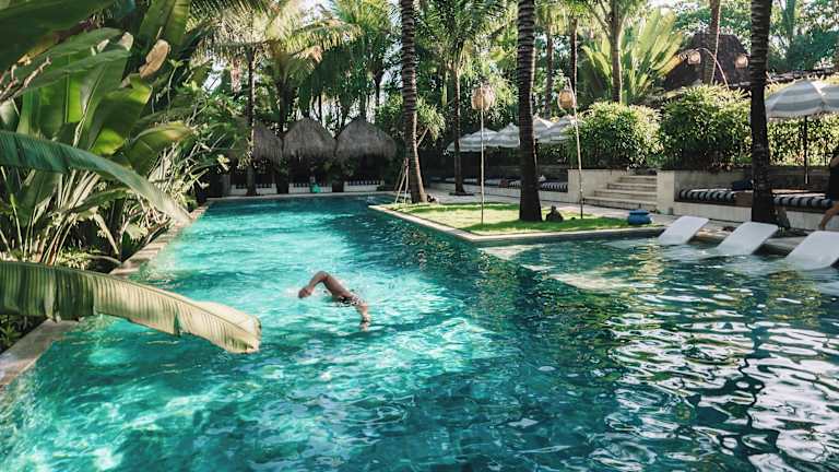 Das Hotel Komune and Beach Club Bali bietet seinen Gästen eine entspannte Atmosphäre direkt am Strand von Keramas. Mit einem Außenpool nur für Erwachsene und Massageanwendungen können Sie hier die perfekte Auszeit genießen. Das Strandrestaurant serviert Ihnen internationale Gerichte und die klimatisierten Zimmer bieten allen Komfort, den Sie benötigen. Das Hotel liegt in der Nähe des Bali Safari Marine Parks und ist der ideale Ausgangspunkt, um die Umgebung zu erkunden. Die Mitarbeiter des Hotels helfen Ihnen gerne bei der Organisation von Ausflügen und Mietwagen.