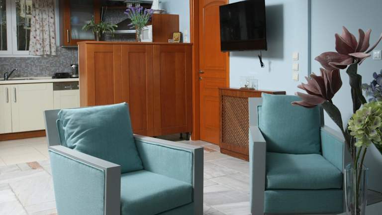 Das Apartment im kon&kona hrakleitsa verfügt über ein komfortables Schlafzimmer, eine voll ausgestattete Küche mit Kühlschrank und Geschirrspüler sowie einen gemütlichen Sitzbereich. Ein Flachbild-TV und kostenfreies WLAN sind ebenfalls vorhanden. Das Apartment bietet zudem zwei Badezimmer mit Badewanne sowie Handtücher und Bettwäsche.