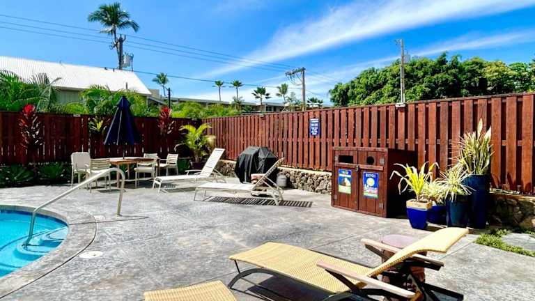 Die Unterkunft Kona 1br condo on Alii Dr auf Alii Drive ist ein Ferienwohnung mit einem Außenpool und einer Veranda oder einem Patio. Sie bietet eine klimatisierte Umgebung und Zugang zu kostenlosem WLAN sowie Privatparkplätzen.