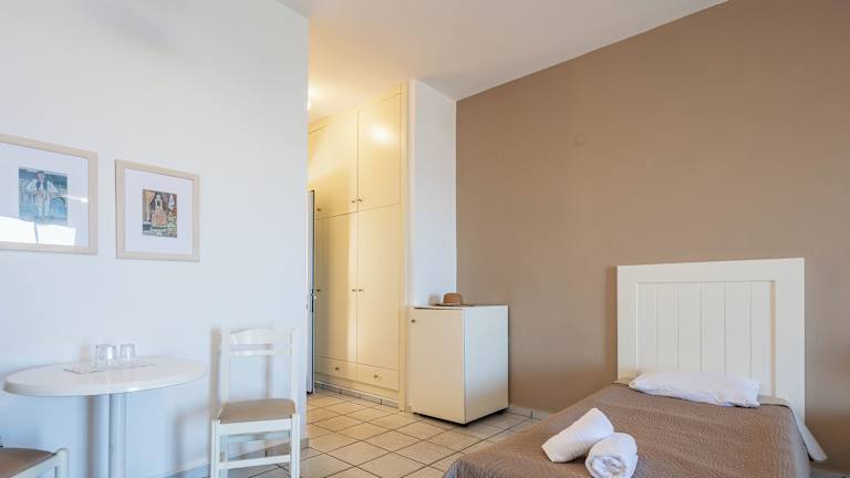 Das hoteleigene Restaurant serviert Ihnen traditionelle griechische Gerichte entweder im Innenbereich oder auf der überdachten Terrasse. An der Poolbar können Sie frische Säfte und exotische Cocktails genießen. Beginnen Sie den Tag mit einem amerikanischen Frühstück und genießen Sie Halbpension mit Frühstück und Abendessen.