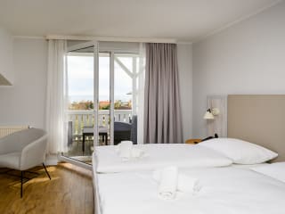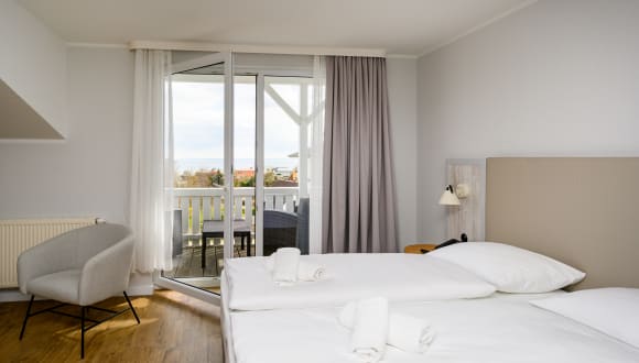 Frisch renoviert im Frühjahr 2022, erwartet Sie das Hotel mit 55 Zimmern und 4 Appartements teilweise mit Meerblick, Balkon oder Terrasse und kostenfreiem WLAN.