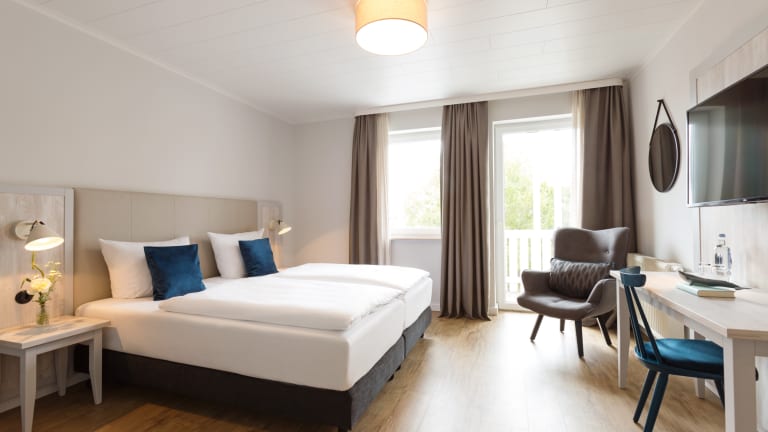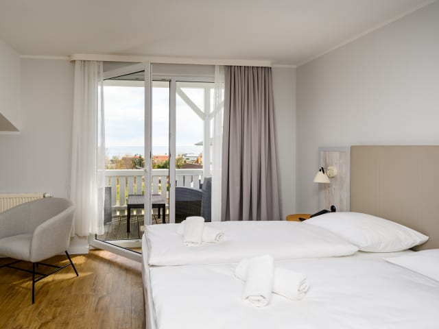 Das Biosphärenreservat Süd-Ost Rügen ist eine Kulturlandschaft mit beeindruckender Natur. Die spektakuläre Landschaft des Rügener Küstenraumes ist stark geprägt durch die tiefe Verzahnung von Land und Meer. Breite Sandstrände wechseln sich mit schroffen Steilküsten ab. Entdecken Sie diese Einzigartigkeit bei Ihren ausgedehnten Wanderungen. Tipp: Gegen vorherige Reservierung ist die Nutzung des Wellnessbereiches mit Schwimmbad, Saunen und Fitness im nahegelegenen Schwesternhotel Vju Hotel Rügen (ca. 150m entfernt) möglich.
