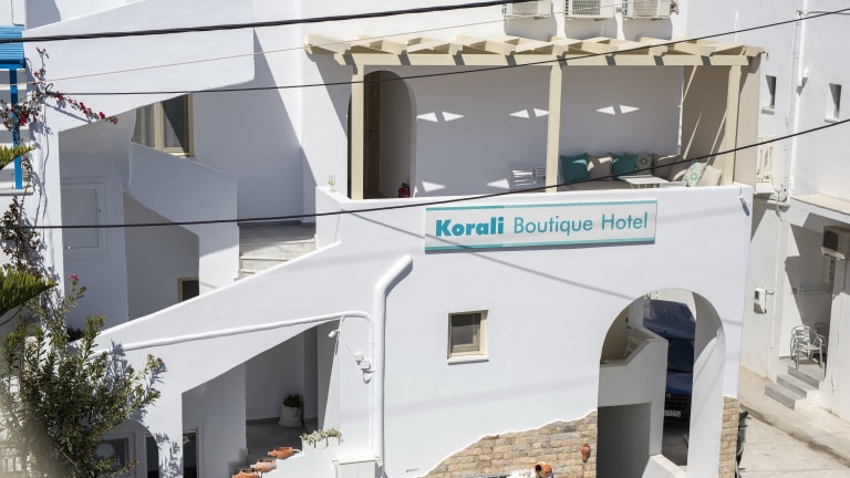 Das Korali Boutique Hotel liegt zentral in Naxos Chora und ist nur 50 m vom wunderschönen Strand von Agios Georgios entfernt. Der Hauptplatz von Naxos-Stadt ist ebenfalls nur 250 m entfernt. Die ruhige Lage des Hotels bietet Ihnen die Möglichkeit, einen entspannenden Urlaub zu genießen. Der Hafen von Naxos ist nur 800 m entfernt und der Flughafen der Insel ist 1,5 km entfernt. In der Nähe des Hotels befinden sich das Archäologische Museum und die Burg von Naxos, die auf Ihren Besuch warten.