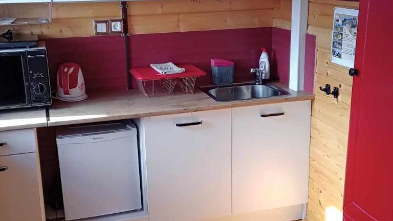 Die Wohneinheiten verfügen über eine eigene Küche, die mit Kühlschrank, Mikrowelle, Herdplatte und Toaster ausgestattet ist, wodurch Selbstverpflegung möglich ist.