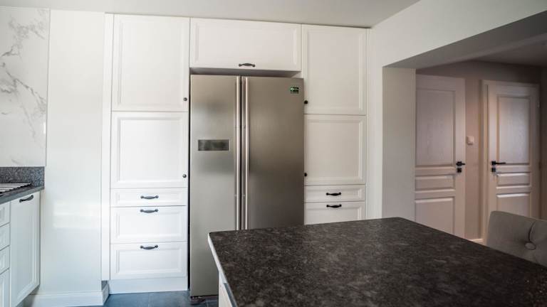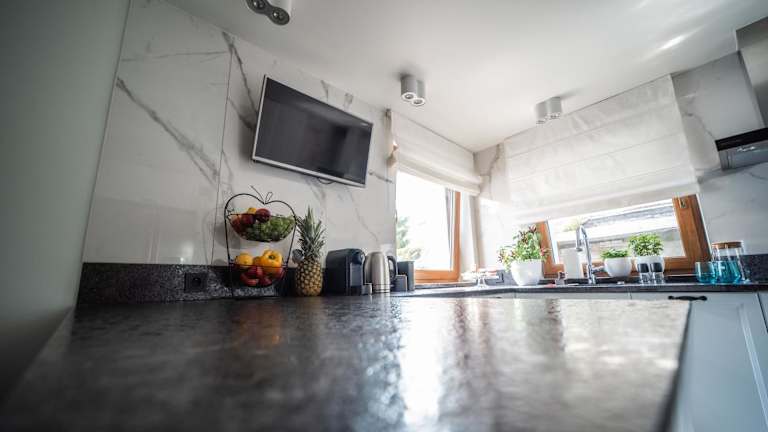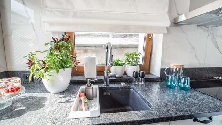 Die Ferienwohnung umfasst ein Schlafzimmer, ein Wohnzimmer mit einem Flachbild-TV, eine voll ausgestattete Küche und ein Badezimmer.