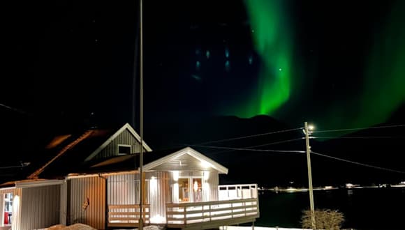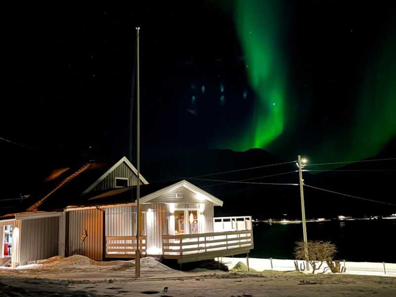 Das Ferienhaus Koselig hus nær sjø og fjell befindet sich in Nord-Lenangen, umgeben von einer idyllischen Landschaft mit direktem Zugang zur Skipiste und zahlreichen Möglichkeiten zum Wandern und Radfahren. Der nächstgelegene Flughafen, Tromsø, ist 95 km entfernt.